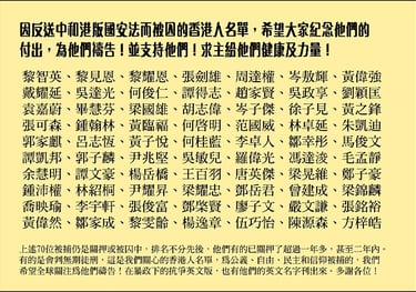 未來的迫害 大多數政治組織和貿易 工會由港版 國安法、教會 也會成為迫害在香港 孔。 兩座教堂被強行 停止運營並解散。 這裡, 我希望會有一個相對 在押人員的完整名單 香港民主的監獄 和正義。 我希望每個人都會祈禱 為他們。